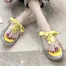 Women's Fashion Transparent Slippers Solid Color Ribbon Flat with Slip-On Round Toe Slippers Casual Slip Outside Wearing Slipper